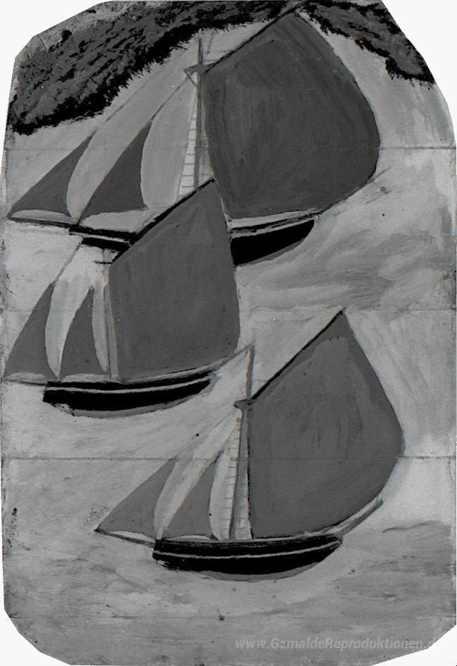 Wir bieten Ihnen eine handgefertigte Reproduktion auf Leinwand des berühmten Kunstwerks 'Drei Grauausgelaufen Schiffe' von Alfred Wallis, aus dem Reproduktionsmuseum.