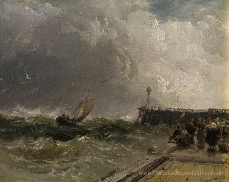 Wir bieten Ihnen eine handgefertigte Reproduktion auf Leinwand des berühmten Kunstwerks 'Ein Küsten-Szene' von James Webb , aus dem Reproduktionsmuseum.