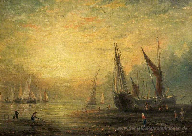 Wir bieten Ihnen eine handgefertigte Reproduktion auf Leinwand des berühmten Kunstwerks 'Ein Meerblick mit Yachten am Sonnenuntergang' von James Webb , aus dem Reproduktionsmuseum.