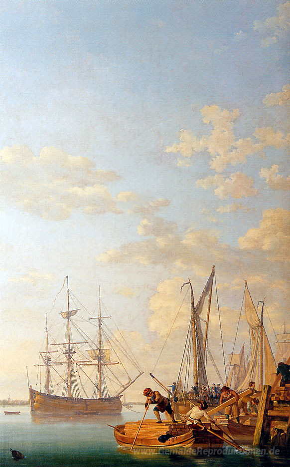 Wir bieten Ihnen eine handgefertigte Reproduktion auf Leinwand des berühmten Kunstwerks 'Entladen von Holz bei Builenwalenvest' von Abraham van Strij, aus dem Reproduktionsmuseum.