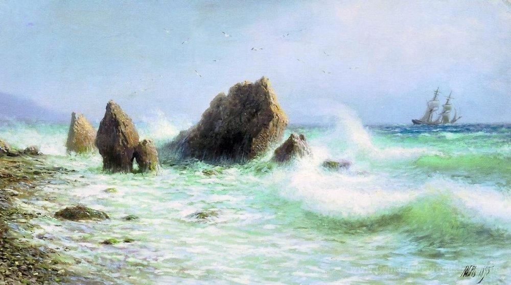Wir bieten Ihnen eine handgefertigte Reproduktion auf Leinwand des berühmten Kunstwerks 'Entlang der Küste Livadia' von Lev Lagorio, aus dem Reproduktionsmuseum.