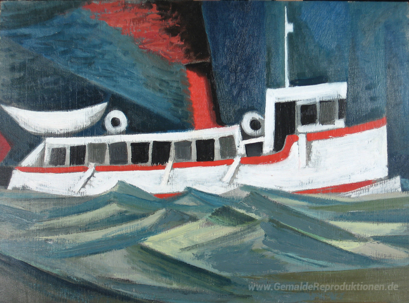 Wir bieten Ihnen eine handgefertigte Reproduktion auf Leinwand des berühmten Kunstwerks 'Ferry in Bigwin Insel' von Jack Bush, aus dem Reproduktionsmuseum.