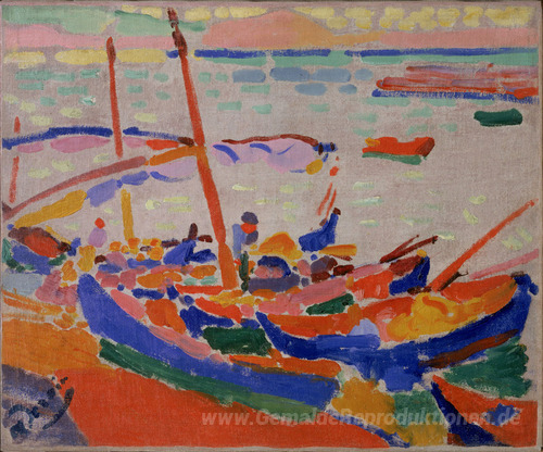 Wir bieten Ihnen eine handgefertigte Reproduktion auf Leinwand des berühmten Kunstwerks 'Fischerboote, Collioure' von Andre Derain, aus dem Reproduktionsmuseum.