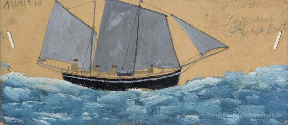 Wir bieten Ihnen eine handgefertigte Reproduktion auf Leinwand des berühmten Kunstwerks 'Französisch lugsail Fischerboot' von Alfred Wallis, aus dem Reproduktionsmuseum.