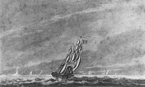 Wir bieten Ihnen eine handgefertigte Reproduktion auf Leinwand des berühmten Kunstwerks 'Full Sail Off Sandy Hook Eingang zum Hafen von New York' von Pavel Svinyin, aus dem Reproduktionsmuseum.