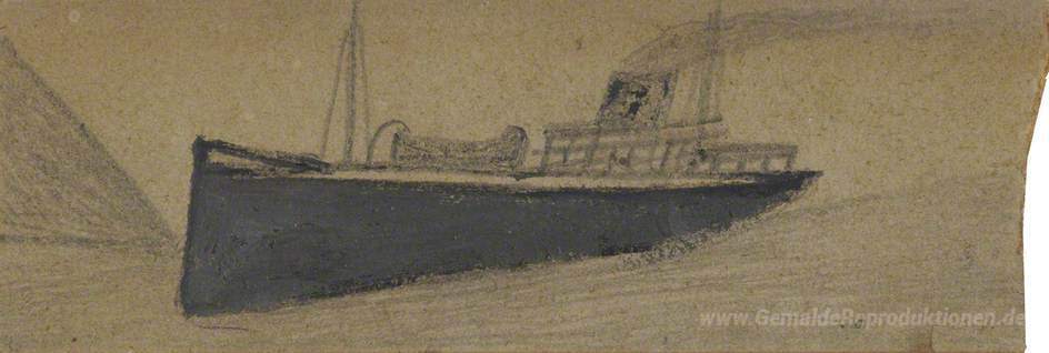 Wir bieten Ihnen eine handgefertigte Reproduktion auf Leinwand des berühmten Kunstwerks 'Grau Dampfboot' von Alfred Wallis, aus dem Reproduktionsmuseum.