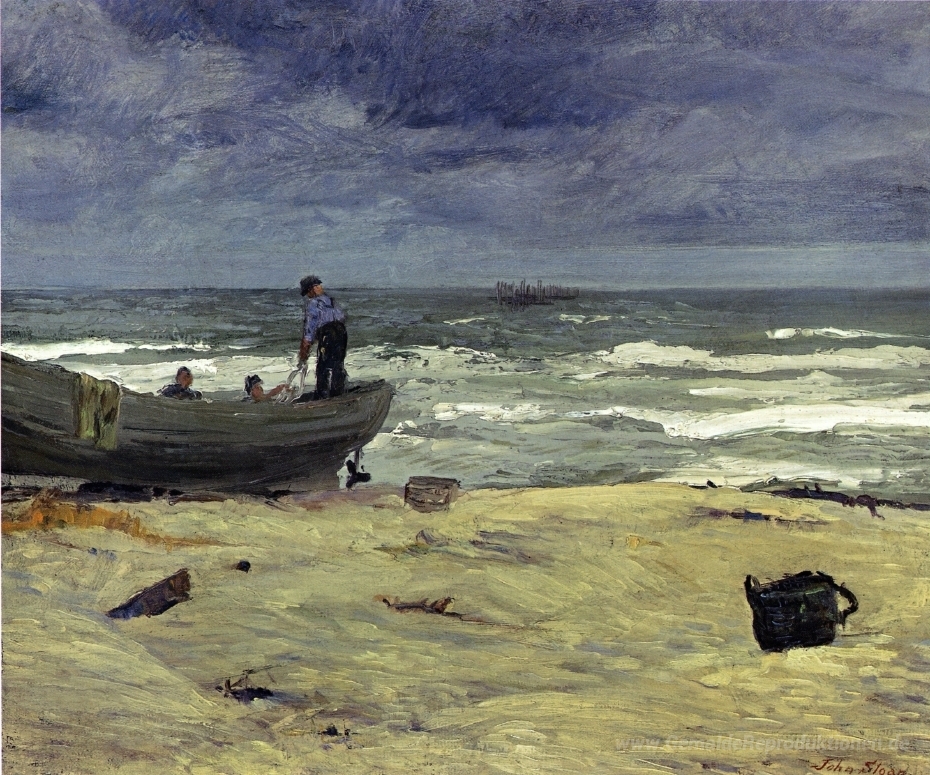 Wir bieten Ihnen eine handgefertigte Reproduktion auf Leinwand des berühmten Kunstwerks 'Grauer Tag, Jersey Coast' von John French Sloan, aus dem Reproduktionsmuseum.