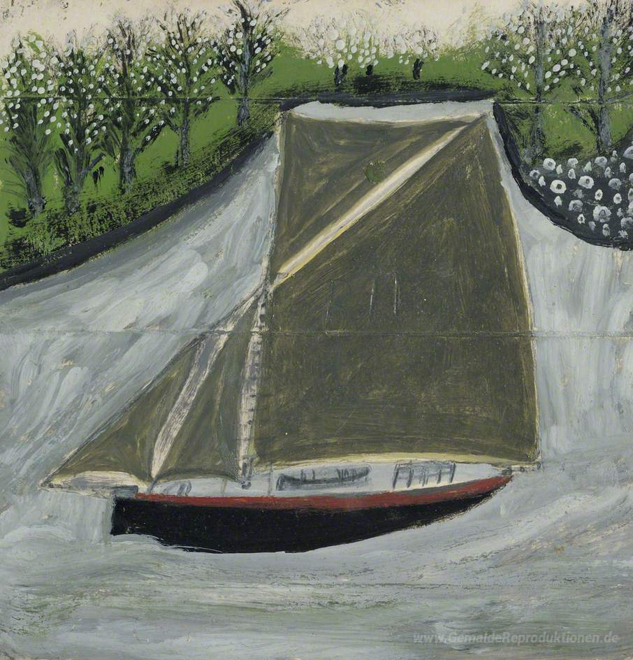 Wir bieten Ihnen eine handgefertigte Reproduktion auf Leinwand des berühmten Kunstwerks 'Großsegler und Orchard 1937' von Alfred Wallis, aus dem Reproduktionsmuseum.