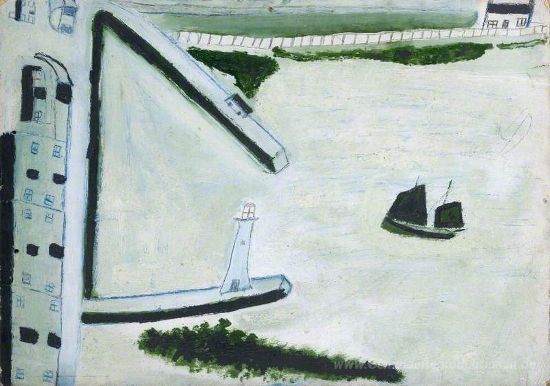 Wir bieten Ihnen eine handgefertigte Reproduktion auf Leinwand des berühmten Kunstwerks 'Hafen und Segelschiff-' von Alfred Wallis, aus dem Reproduktionsmuseum.