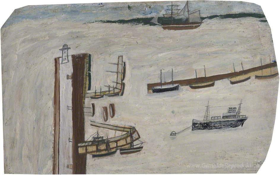Wir bieten Ihnen eine handgefertigte Reproduktion auf Leinwand des berühmten Kunstwerks 'Hafen-Szene' von Alfred Wallis, aus dem Reproduktionsmuseum.