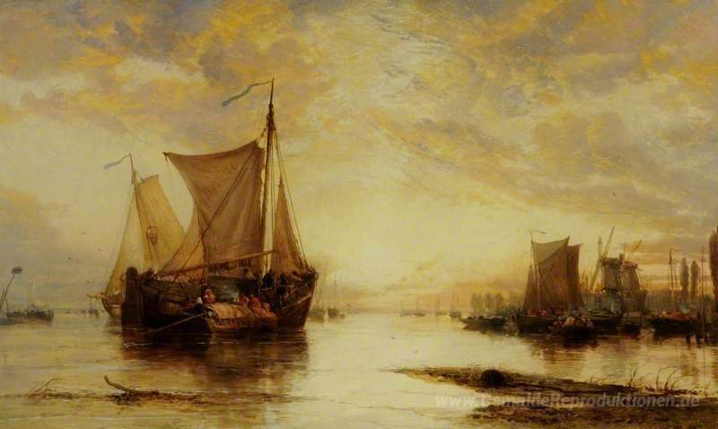 Wir bieten Ihnen eine handgefertigte Reproduktion auf Leinwand des berühmten Kunstwerks 'In Dordrecht, Niederlande' von James Webb , aus dem Reproduktionsmuseum.