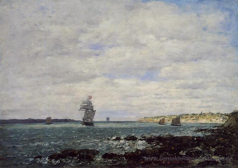 Wir bieten Ihnen eine handgefertigte Reproduktion auf Leinwand des berühmten Kunstwerks 'Küste der Bretagne' von Eugene Boudin, aus dem Reproduktionsmuseum.