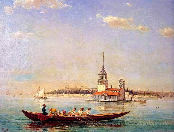 Wir bieten Ihnen eine handgefertigte Reproduktion auf Leinwand des berühmten Kunstwerks 'Kizkulesi (Jungfrauenturm)' von Hoca Ali Riza, aus dem Reproduktionsmuseum.