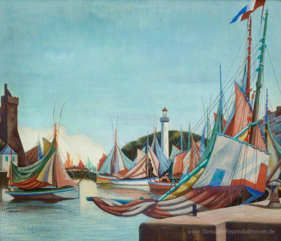 Wir bieten Ihnen eine handgefertigte Reproduktion auf Leinwand des berühmten Kunstwerks 'La Rochelle' von Edward Wadsworth, aus dem Reproduktionsmuseum.