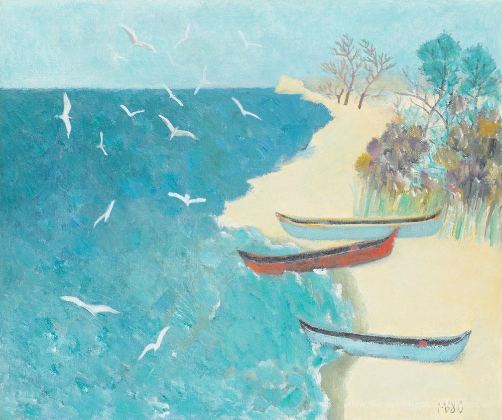 Wir bieten Ihnen eine handgefertigte Reproduktion auf Leinwand des berühmten Kunstwerks 'Lastkähne auf der Shore' von Viorel Marginean, aus dem Reproduktionsmuseum.