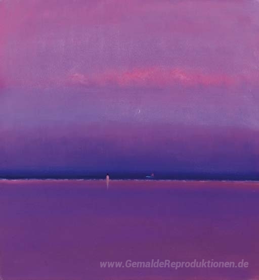 Wir bieten Ihnen eine handgefertigte Reproduktion auf Leinwand des berühmten Kunstwerks 'Lelant Beach, New Moon' von John Miller, aus dem Reproduktionsmuseum.