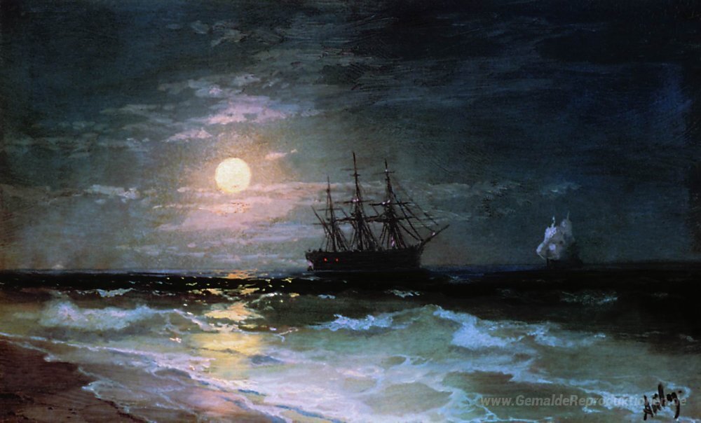 Willkommen in unserer exklusiven Sammlung von Ölgemälden, in der jede Leinwand eine Geschichte erzählt. Entdecken Sie die faszinierende Schönheit des Meisterwerks Lunar Nacht, geschaffen von dem renommierten Künstler Ivan Aivazovsky. Bekannt für seine atemberaubenden Seelandschaften und die meisterhafte Darstellung von Licht und Wasser, entführt Aivazovsky die Betrachter in eine träumerische Welt, in der das Meer mit dem Himmel verschmilzt.