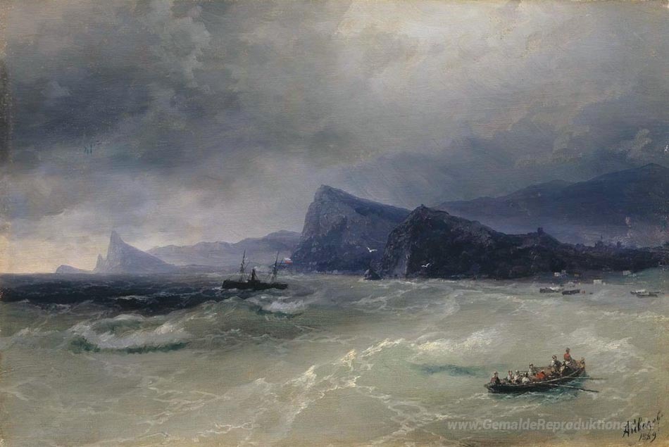 Wir bieten Ihnen eine handgefertigte Reproduktion auf Leinwand des berühmten Kunstwerks 'Meer. Rocks' von Ivan Aivazovsky, aus dem Reproduktionsmuseum.