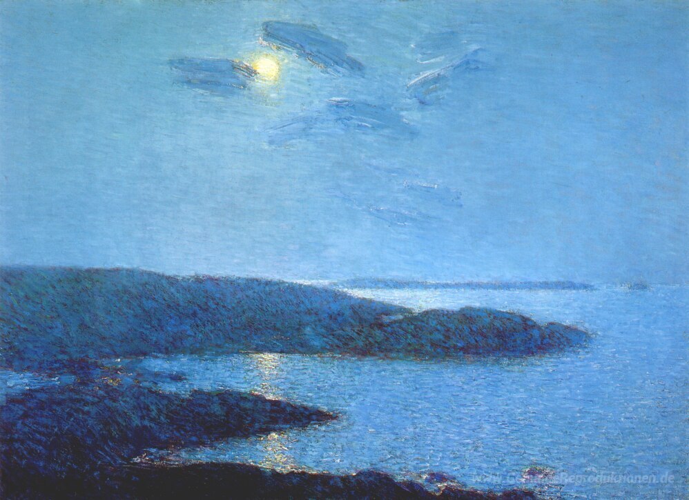 Wir bieten Ihnen eine handgefertigte Reproduktion auf Leinwand des berühmten Kunstwerks 'Mondlicht' von Childe Hassam, aus dem Reproduktionsmuseum.