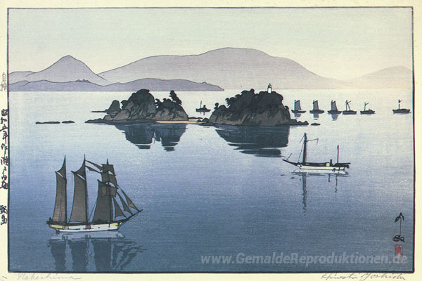 Wir bieten Ihnen eine handgefertigte Reproduktion auf Leinwand des berühmten Kunstwerks 'Nabeshima' von Hiroshi Yoshida, aus dem Reproduktionsmuseum.