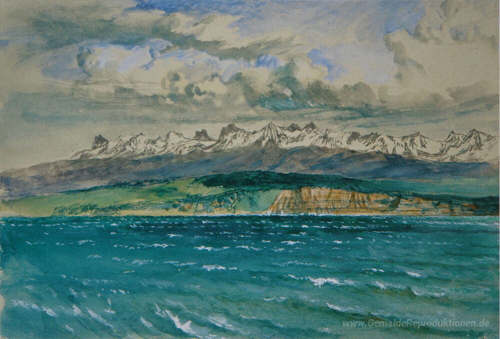 Wir bieten Ihnen eine handgefertigte Reproduktion auf Leinwand des berühmten Kunstwerks 'Nachmittag im Frühling, mit Südwind, am Neuchatel' von John Ruskin, aus dem Reproduktionsmuseum.