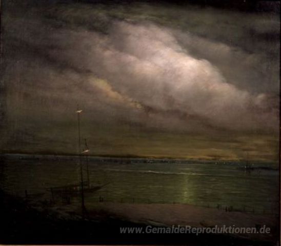Wir bieten Ihnen eine handgefertigte Reproduktion auf Leinwand des berühmten Kunstwerks 'Nacht Shore, Long Island' von Leon Dabo, aus dem Reproduktionsmuseum.