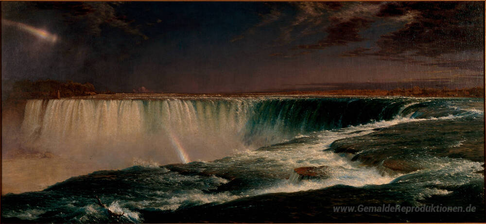 Wir bieten Ihnen eine handgefertigte Reproduktion auf Leinwand des berühmten Kunstwerks 'Niagara' von Frederic Edwin Church, aus dem Reproduktionsmuseum.
