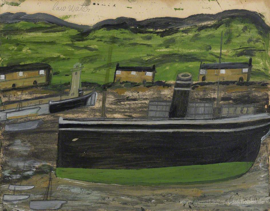 Wir bieten Ihnen eine handgefertigte Reproduktion auf Leinwand des berühmten Kunstwerks 'Niedrigwasser' von Alfred Wallis, aus dem Reproduktionsmuseum.