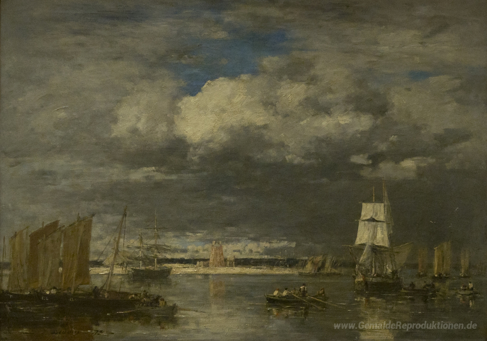 Wir bieten Ihnen eine handgefertigte Reproduktion auf Leinwand des berühmten Kunstwerks 'Ohne Titel' von Eugene Boudin, aus dem Reproduktionsmuseum.