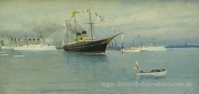 Wir bieten Ihnen eine handgefertigte Reproduktion auf Leinwand des berühmten Kunstwerks 'Parade der Marine. Kaiseryacht Standart.' von Ivan Vladimirov, aus dem Reproduktionsmuseum.