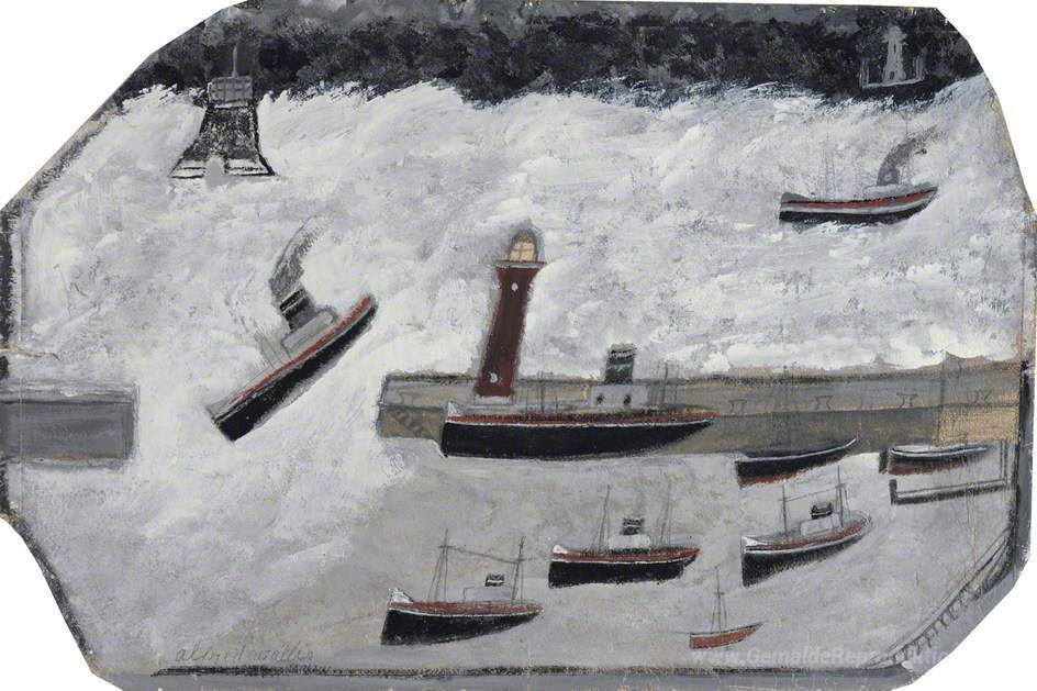 Herzlich willkommen in der Welt der Ölgemälde, wo Kunst und Emotion in perfekter Harmonie verschmelzen. Entdecken Sie die faszinierende Schönheit des Meisterwerks Penzance Harbour, geschaffen von dem talentierten Künstler Alfred Wallis. Wallis, bekannt für seinen einzigartigen Stil, kombiniert naiv-künstlerische Ansätze mit lebendigen Farben und ausdrucksstarken Formen, die nicht nur ein Bild, sondern ein Gefühl von Ort und Raum schaffen.