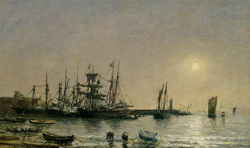 Wir bieten Ihnen eine handgefertigte Reproduktion auf Leinwand des berühmten Kunstwerks 'Portrieux Boote vor Anker im Hafen' von Eugene Boudin, aus dem Reproduktionsmuseum.