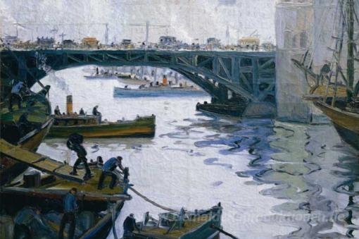 Wir bieten Ihnen eine handgefertigte Reproduktion auf Leinwand des berühmten Kunstwerks 'Puente sobre Barracas' von Benito Quinquela Martin, aus dem Reproduktionsmuseum.