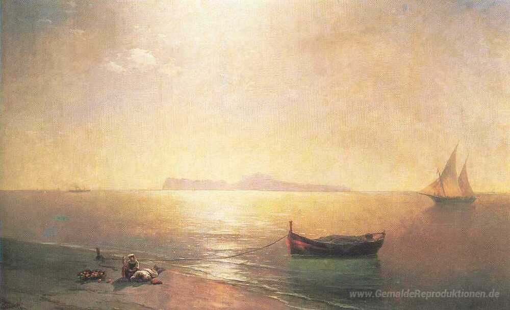 Wir bieten Ihnen eine handgefertigte Reproduktion auf Leinwand des berühmten Kunstwerks 'Ruhe auf dem Mittelmeer' von Ivan Aivazovsky, aus dem Reproduktionsmuseum.