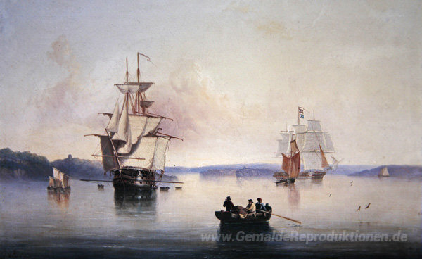 Wir bieten Ihnen eine handgefertigte Reproduktion auf Leinwand des berühmten Kunstwerks 'Saltash Creek- der Nähe von Plymouth' von John Wilson Carmichael, aus dem Reproduktionsmuseum.