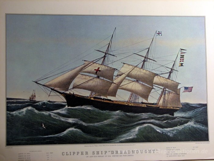 Wir bieten Ihnen eine handgefertigte Reproduktion auf Leinwand des berühmten Kunstwerks 'Scherer-Schiff "Dreadnought"' von Currier and Ives, aus dem Reproduktionsmuseum.