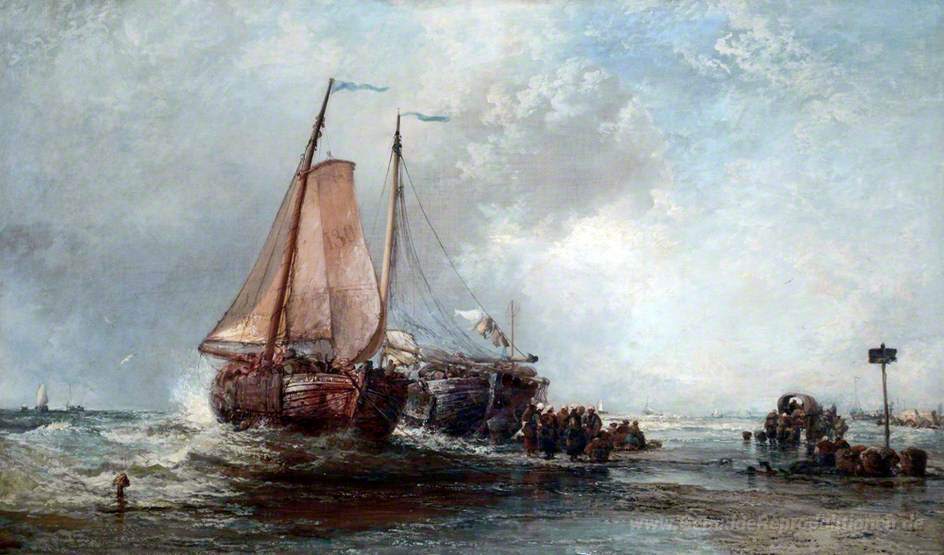 Wir bieten Ihnen eine handgefertigte Reproduktion auf Leinwand des berühmten Kunstwerks 'Scheveningen, Holland' von James Webb , aus dem Reproduktionsmuseum.