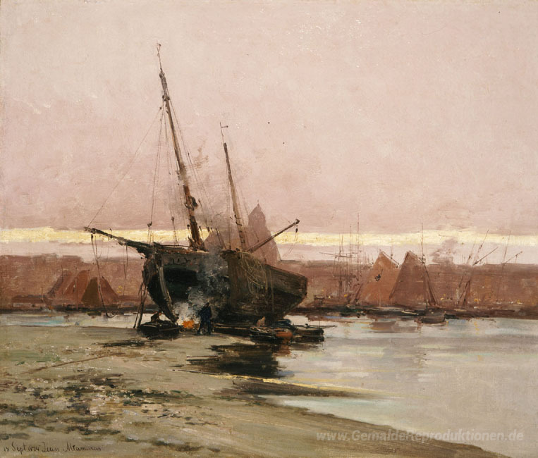 Die meisterhafte Technik, die in Schiff an Land zur Anwendung kommt, kombiniert klassische Impressionismus-Elemente mit innovativen Ansätzen, um eine atmosphärische Wirkung zu erzielen. Das Gemälde verleiht jedem Raum eine besondere Note und schafft eine einladende, inspirierende Umgebung. Lassen Sie sich von der emotionalen Kraft und der zeitlosen Eleganz unserer Ölgemälde begeistern und verleihen Sie Ihrem Zuhause einen Hauch von künstlerischem Flair.