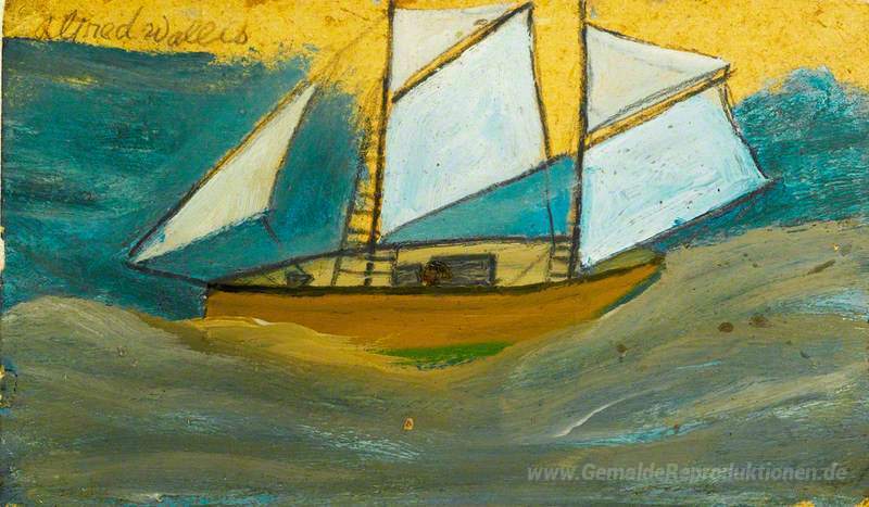 Wir bieten Ihnen eine handgefertigte Reproduktion auf Leinwand des berühmten Kunstwerks 'Schiff im Meer Rau' von Alfred Wallis, aus dem Reproduktionsmuseum.