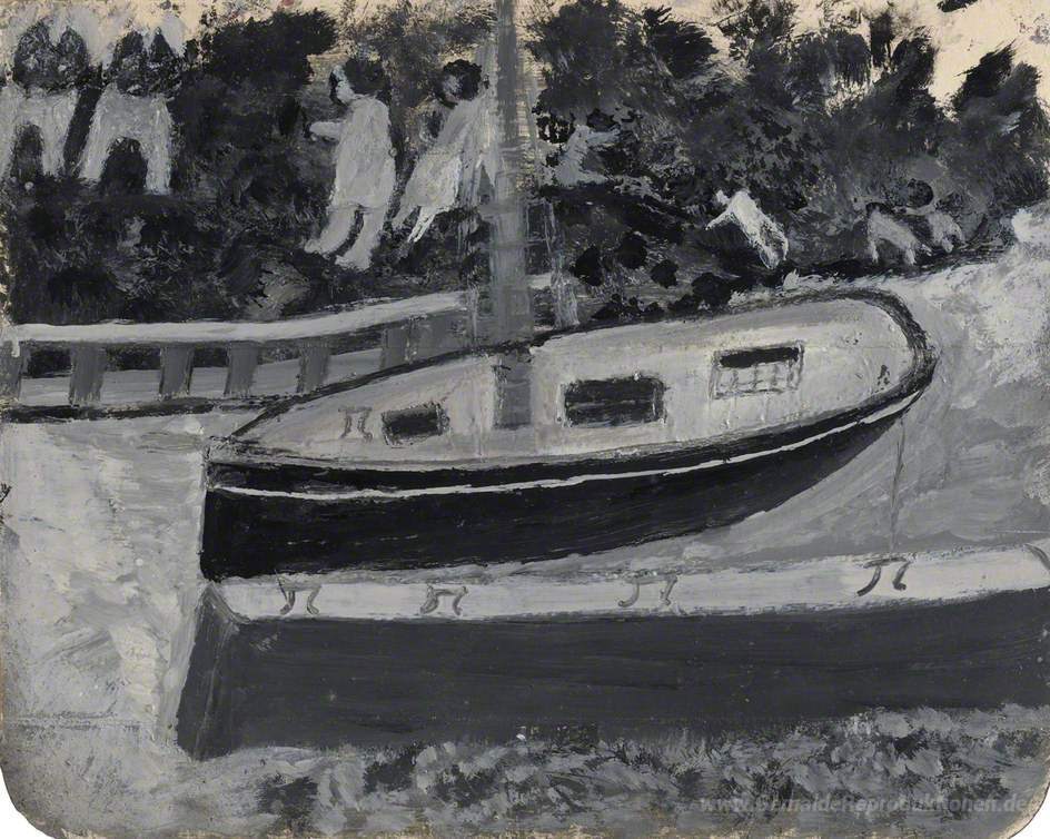 Wir bieten Ihnen eine handgefertigte Reproduktion auf Leinwand des berühmten Kunstwerks 'Schiff, Menschen und Tiere' von Alfred Wallis, aus dem Reproduktionsmuseum.