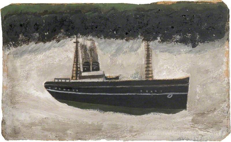 Wir bieten Ihnen eine handgefertigte Reproduktion auf Leinwand des berühmten Kunstwerks 'Schiff' von Alfred Wallis, aus dem Reproduktionsmuseum.