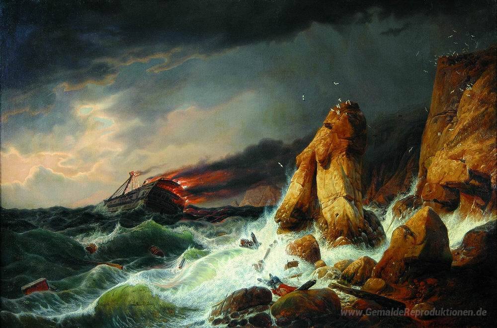 Wir bieten Ihnen eine handgefertigte Reproduktion auf Leinwand des berühmten Kunstwerks 'Schiffbruch' von Alexey Bogolyubov, aus dem Reproduktionsmuseum.