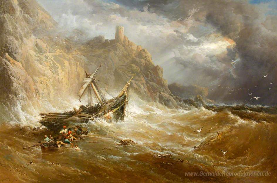 Wir bieten Ihnen eine handgefertigte Reproduktion auf Leinwand des berühmten Kunstwerks 'Schiffbruch' von James Webb , aus dem Reproduktionsmuseum.