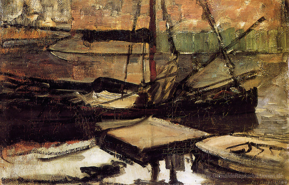 Wir bieten Ihnen eine handgefertigte Reproduktion auf Leinwand des berühmten Kunstwerks 'Schiffe ankern Sun' von Piet Mondrian, aus dem Reproduktionsmuseum.