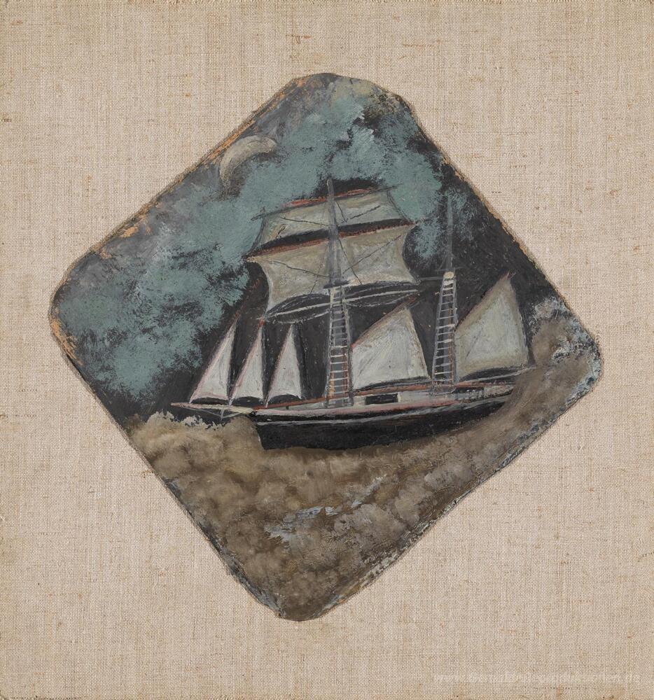 Wir bieten Ihnen eine handgefertigte Reproduktion auf Leinwand des berühmten Kunstwerks 'Schooner unter dem Mond' von Alfred Wallis, aus dem Reproduktionsmuseum.