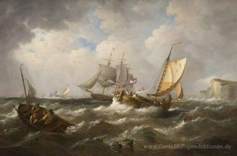 Wir bieten Ihnen eine handgefertigte Reproduktion auf Leinwand des berühmten Kunstwerks 'Seelandschaft mit Französisch Versand' von James Webb , aus dem Reproduktionsmuseum.