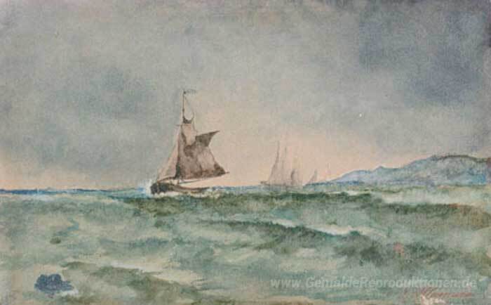 Wir bieten Ihnen eine handgefertigte Reproduktion auf Leinwand des berühmten Kunstwerks 'Segelboote' von Ioannis Altamouras, aus dem Reproduktionsmuseum.