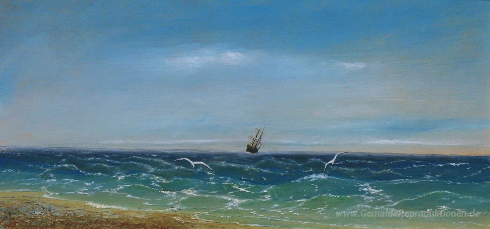 Wir bieten Ihnen eine handgefertigte Reproduktion auf Leinwand des berühmten Kunstwerks 'Segeln auf dem Meer' von Ivan Aivazovsky, aus dem Reproduktionsmuseum.