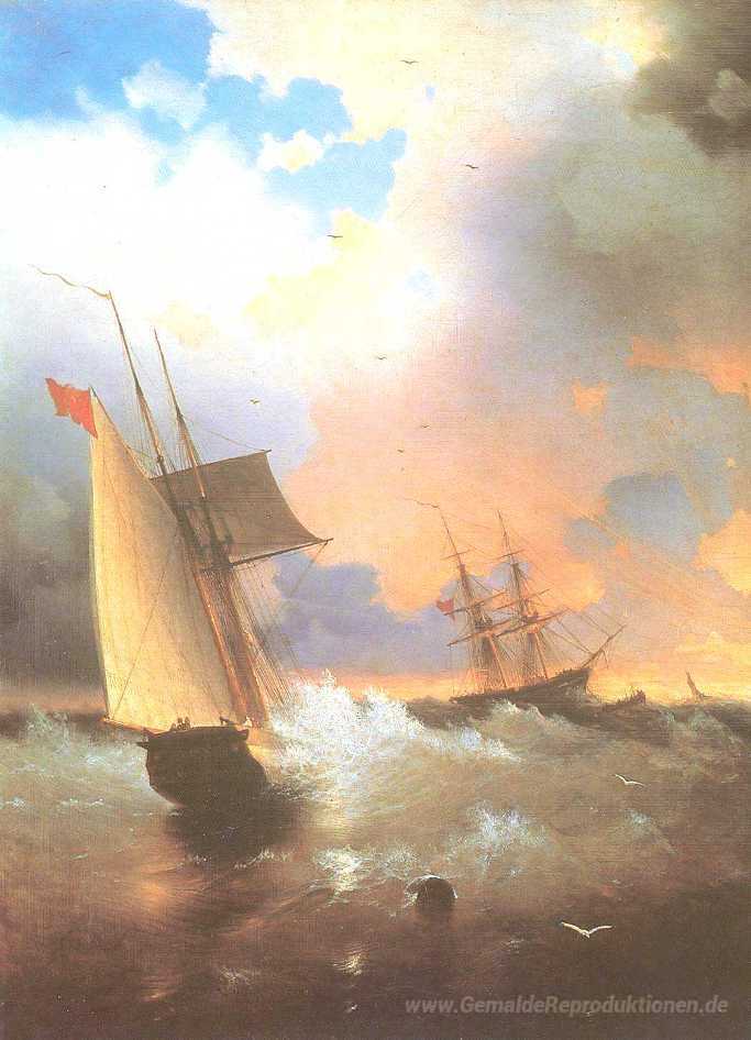 Wir bieten Ihnen eine handgefertigte Reproduktion auf Leinwand des berühmten Kunstwerks 'Segelschiff' von Ivan Aivazovsky, aus dem Reproduktionsmuseum.