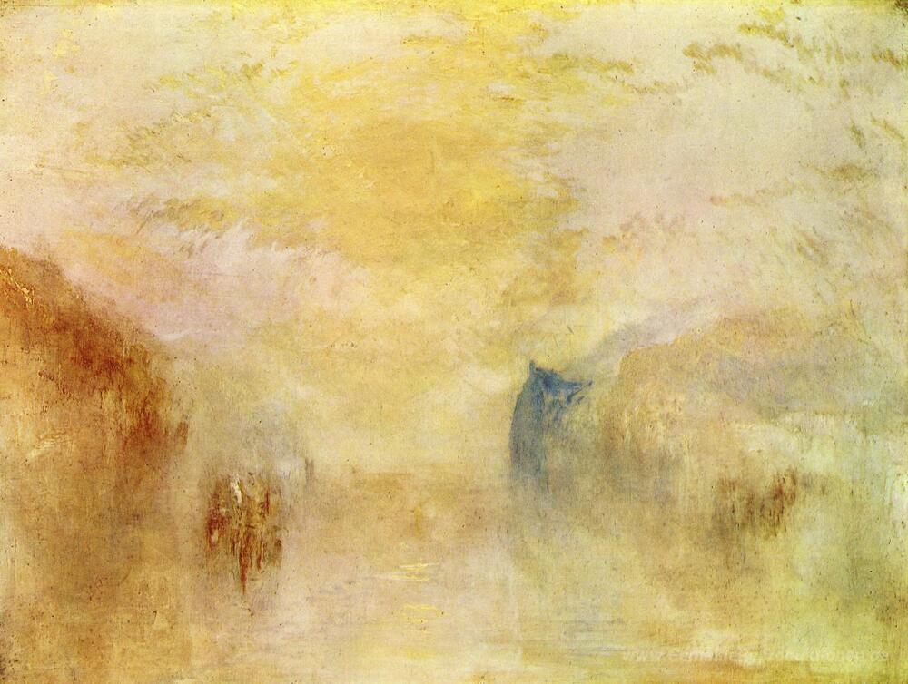 Willkommen in unserer exquisiten Galerie von Ölgemälden, wo künstlerische Meisterwerke darauf warten, Ihre Räume zu bereichern. Eines der herausragenden Werke ist Sonnenaufgang mit einem Boot zwischen Landspitzen, geschaffen von dem legendären Künstler William Turner. Turner, bekannt für seine eindrucksvollen Landschaften und die meisterhafte Anwendung von Licht und Farbe, fängt in diesem Gemälde die flüchtige Schönheit eines Sonnenaufgangs ein und verleiht ihm gleichzeitig eine traumhafte, nahezu etherealische Qualität.